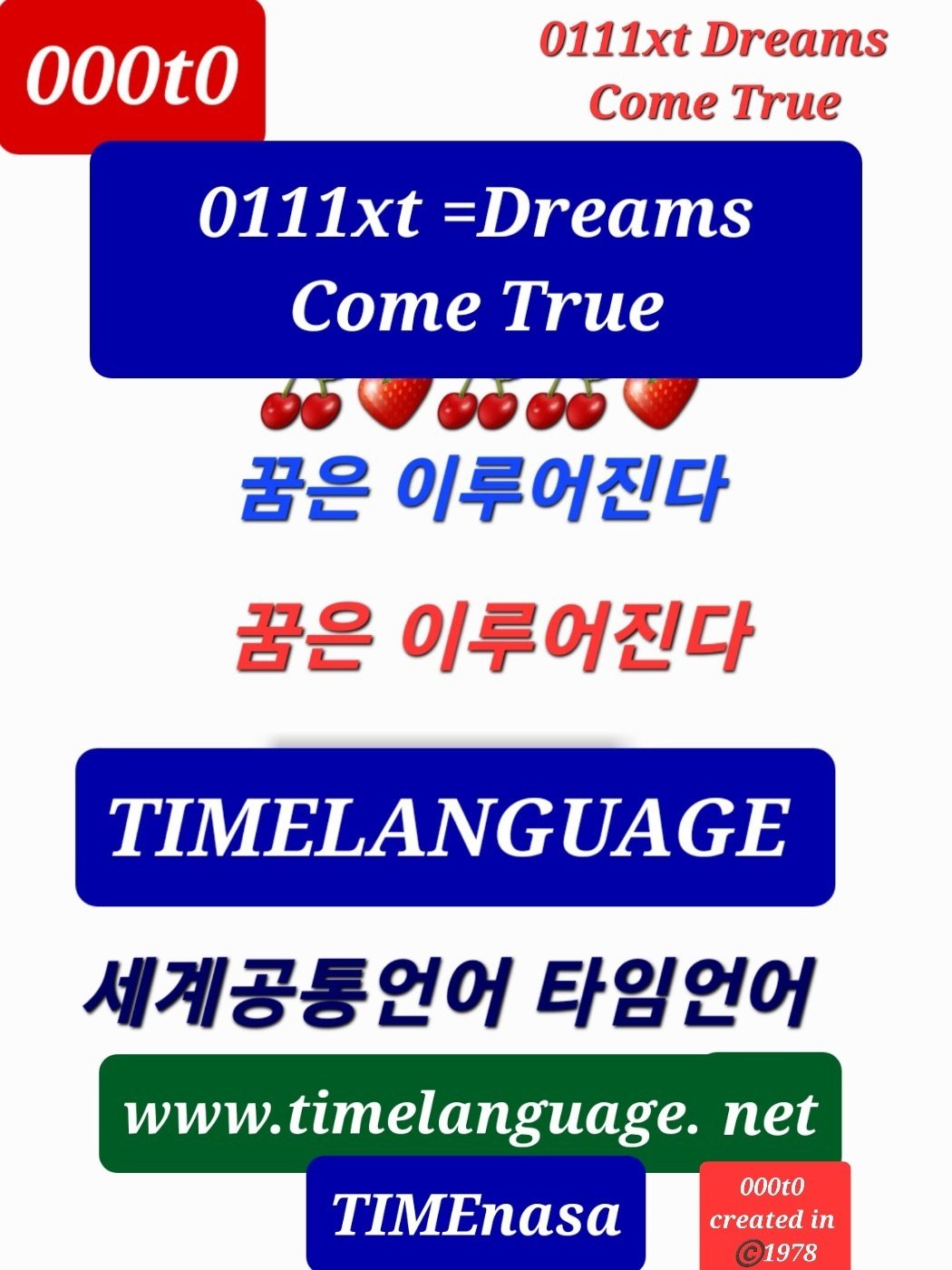 We're introducing Time Language all over the world. Time Language is the world's language consisting of numbers that anyone in the world can easily use. Time Language frees us from foreign languages. Now, there is no need for interpretation and translation. Time Language is pronounced in the language of each country and the meaning is the same. [000t0=Time Language, Copyright 1974. T.H. Kwon All Rights Reserved.] Looking forward to our interactions. Thank you. Huibok Choe, Ph.D.