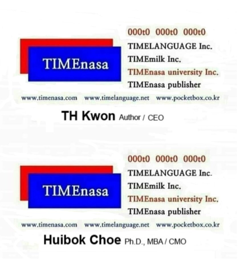 We're introducing Time Language all over the world. Time Language is the world's language consisting of numbers that anyone in the world can easily use. Time Language frees us from foreign languages. Now, there is no need for interpretation and translation. Time Language is pronounced in the language of each country and the meaning is the same. [000t0=Time Language, Copyright 1974. T.H. Kwon All Rights Reserved.] Looking forward to our interactions. Thank you. Huibok Choe, Ph.D., MBA, CMO