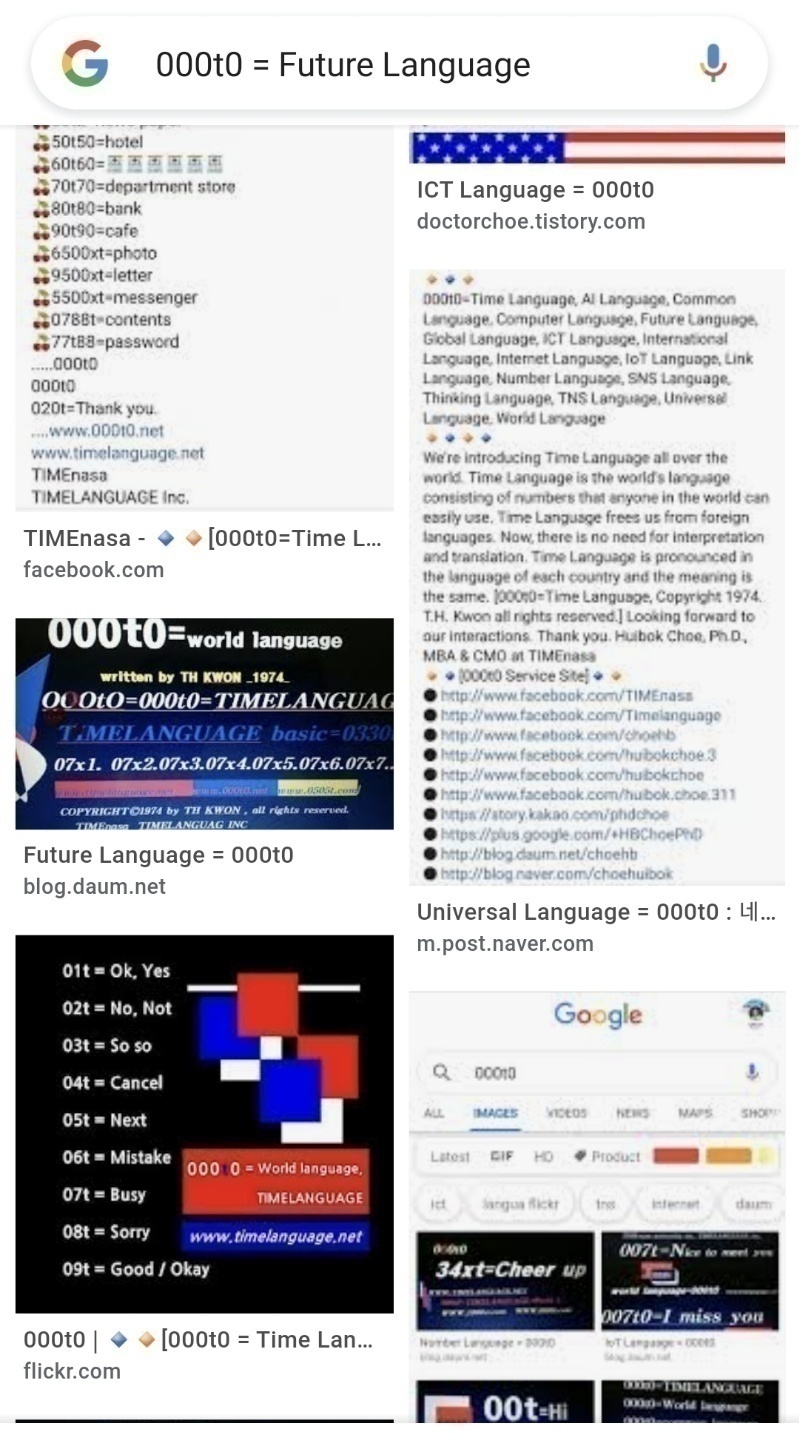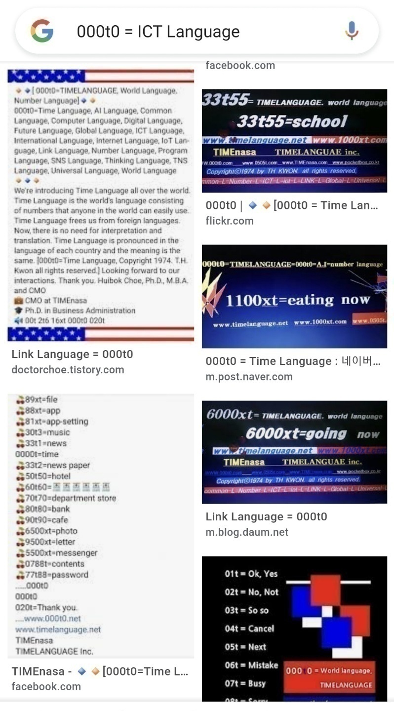 We're introducing Time Language all over the world. Time Language is the world's language consisting of numbers that anyone in the world can easily use. Time Language frees us from foreign languages. Now, there is no need for interpretation and translation. Time Language is pronounced in the language of each country and the meaning is the same. [000t0=Time Language, Copyright 1974. T.H. Kwon All Rights Reserved.] Looking forward to our interactions. Thank you. Huibok Choe, Ph.D.